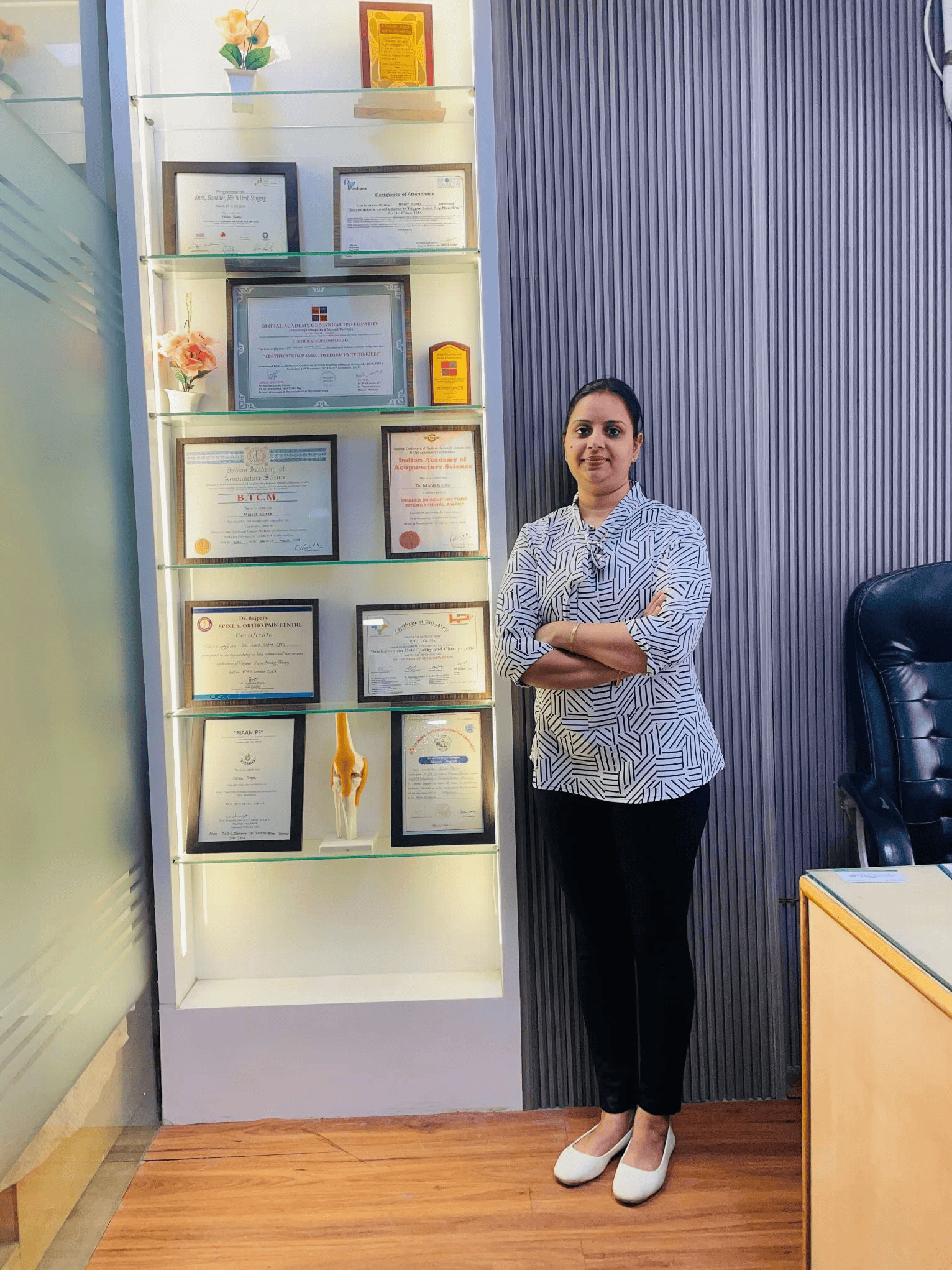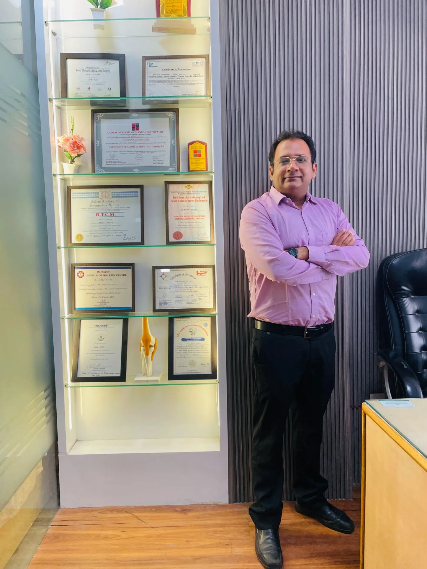I Under gone patela surgery after i have taken physitherapy treatment at Dr. Mohit Gupta by CPM machine. Dr. is very calm and patience and comes in time. He has all advanced machine which is required for post operative therapy and also for other back pain,curvical pain etc. Price also reasonable. Overall treatment is very good.